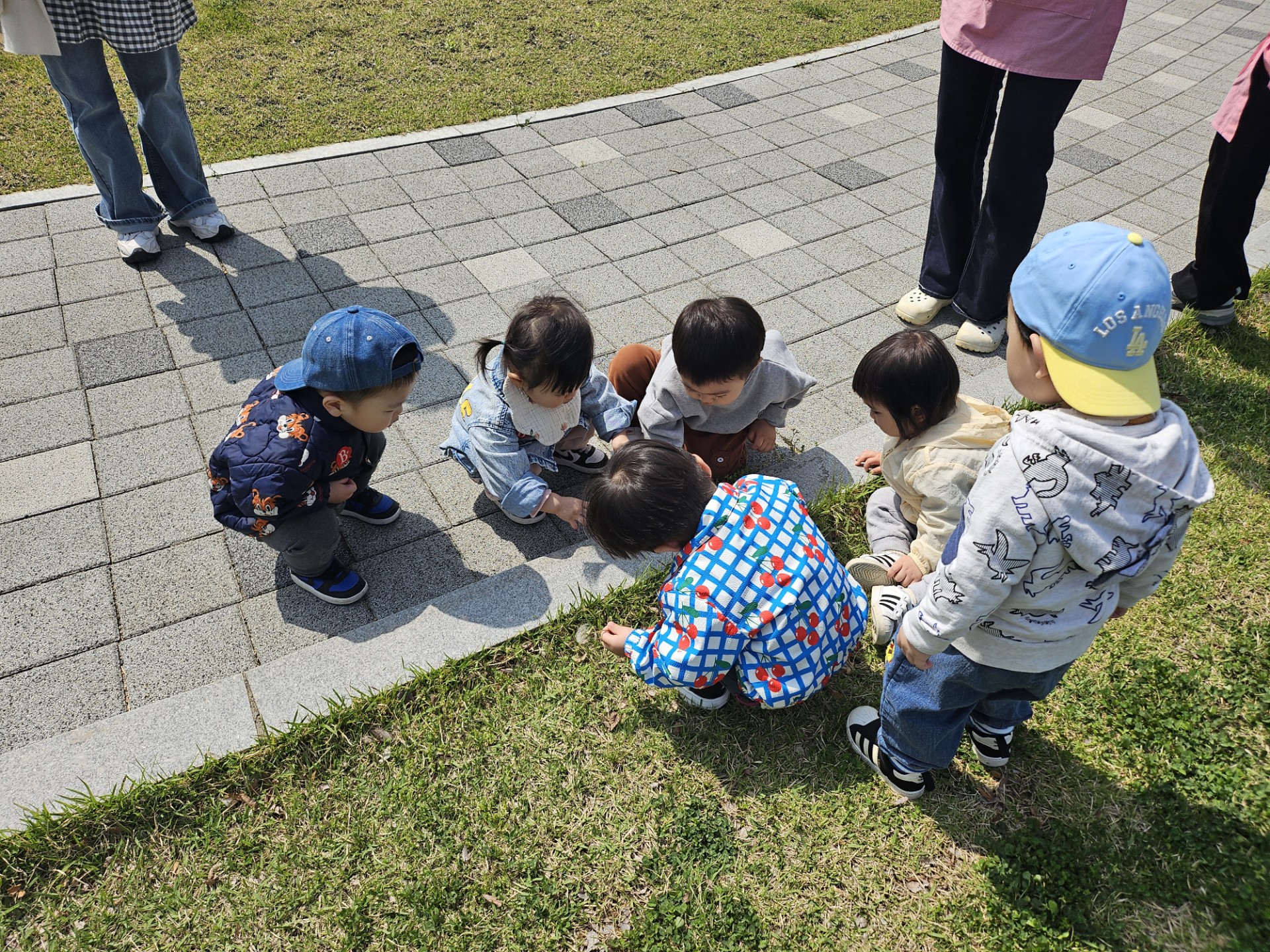 오늘은 시원이와 1세반 친구들이 함께 기다리던 봄 소풍을 떠난 날이었습니다. 봄기운이 물씬 느껴지는 햇살 좋은 날씨 속에서 아이들은 알록달록한 모자를 쓰고 신나게 놀 준비를 마쳤어요.