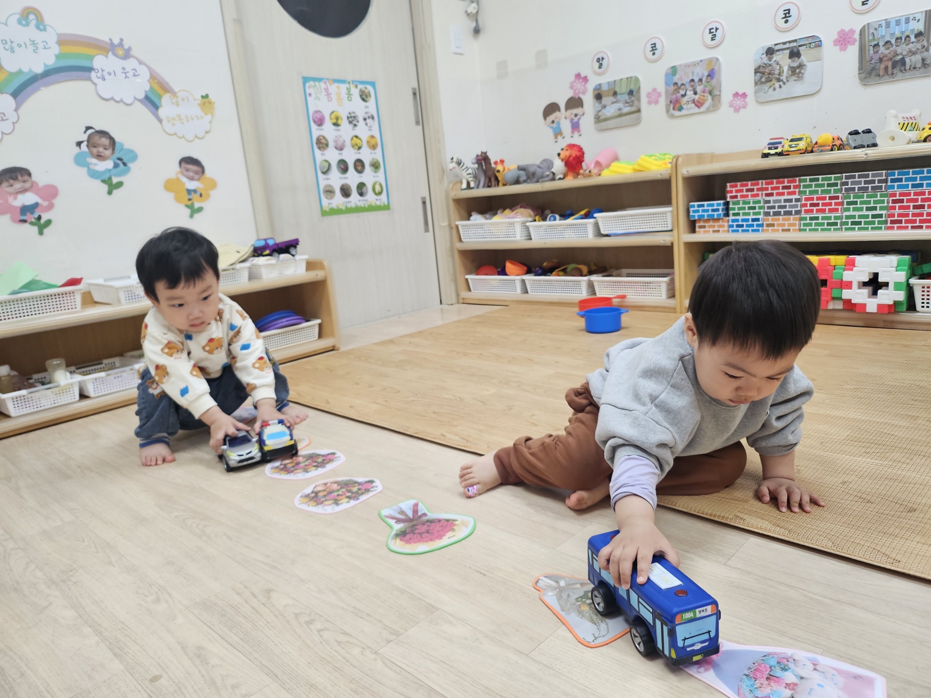 소풍 놀이 중간중간에는 꽃길도 걸어보고, 시원이의 최애 ‘버스’를 발견하며 “어!”라고 반가워하는 귀여운 장면도 있었답니다. 특히 지나가는 타요 버스를 보며 손을 흔들고 좋아하는 모습에 선생님들 모두 흐뭇한 미소를 지었어요. 아이들에게는 이런 짧은 외출 하나하나가 아주 특별한 추억으로 남는답니다.