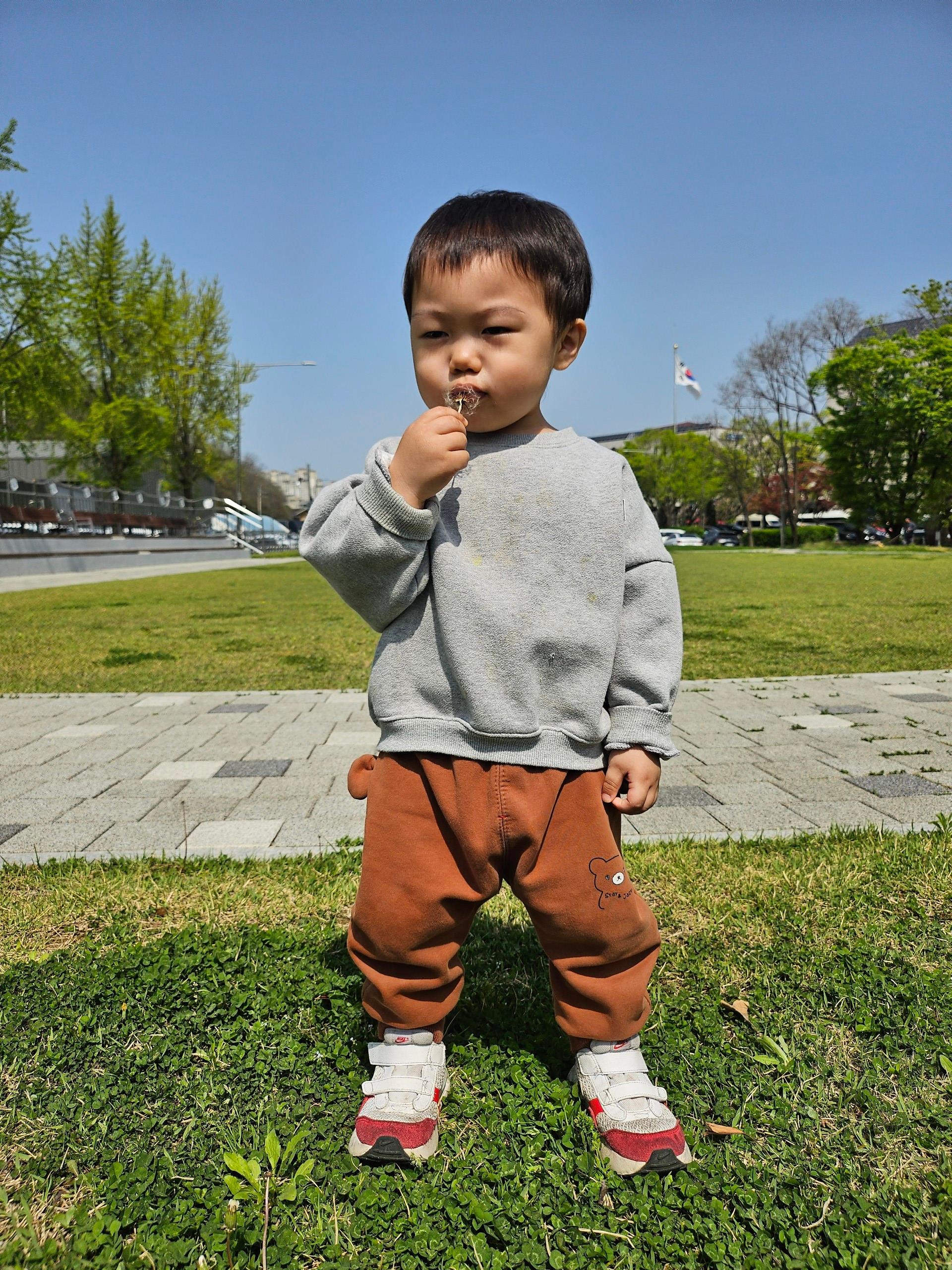 또 민들레 씨앗을 발견한 시원이는 “후~” 하고 불며 날리는 모습도 보여주었어요. 그 작은 입에서 나오는 바람에 씨앗이 흩날리는 모습을 보며, 자연과 함께 노는 법을 하나씩 배워가는 아이들의 모습이 참 아름답게 느껴졌습니다.