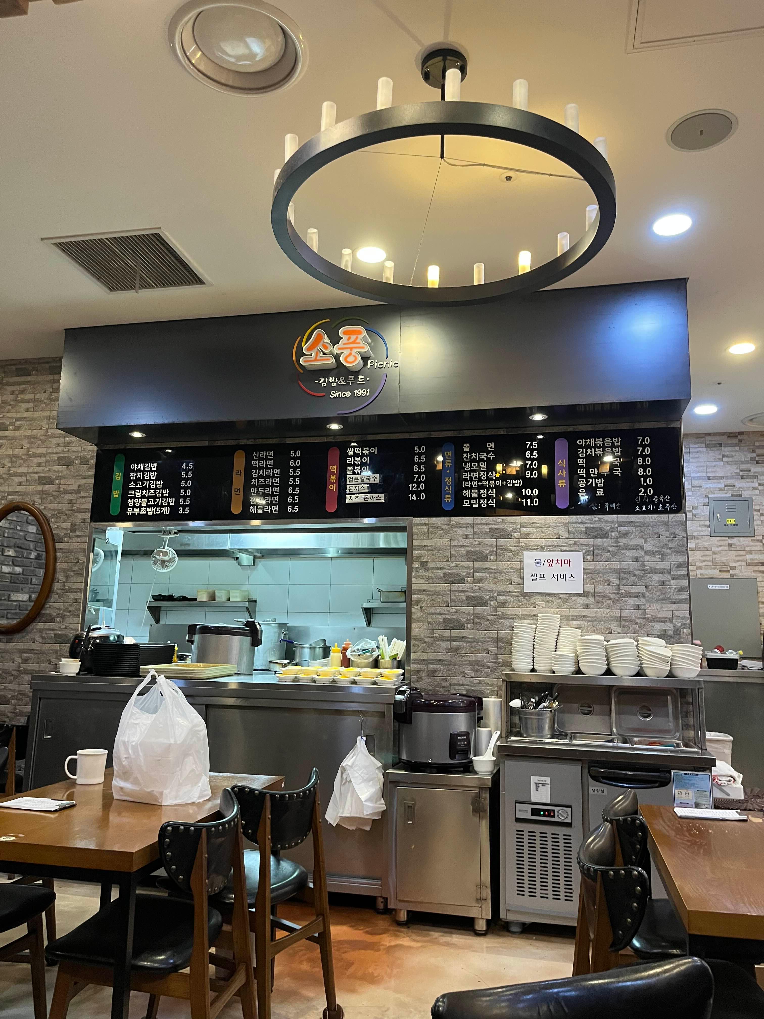 소풍 분식집에서 김밥과 떡만두국을 먹었습니다.